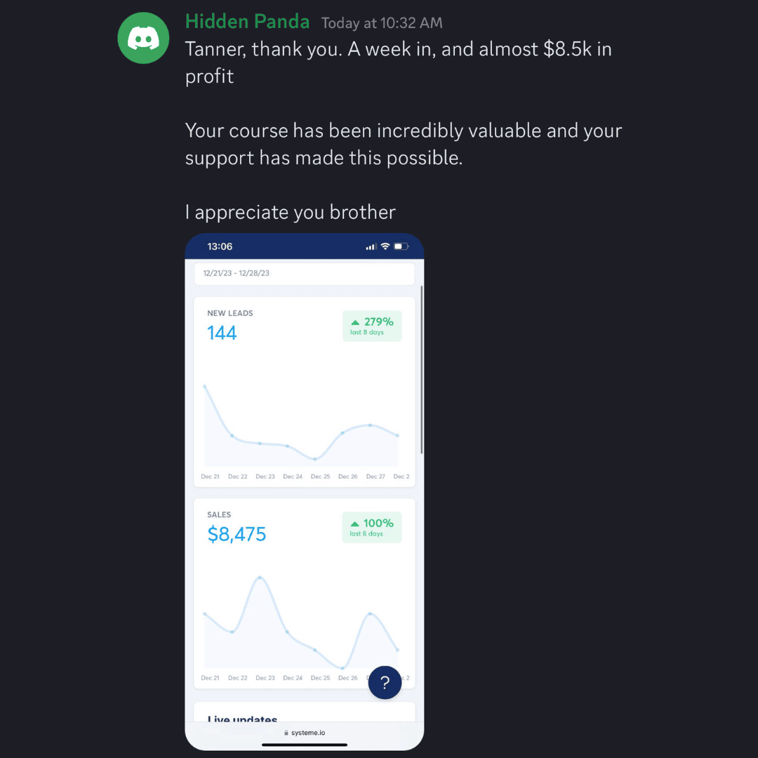 "I was working seven days a week and wading tables to stack up some cash. Then I bought Tanner’s course and quit my job two weeks later because we started making $1k a day. Dial yourself in and actually learn from the value!"- Julian Pulido